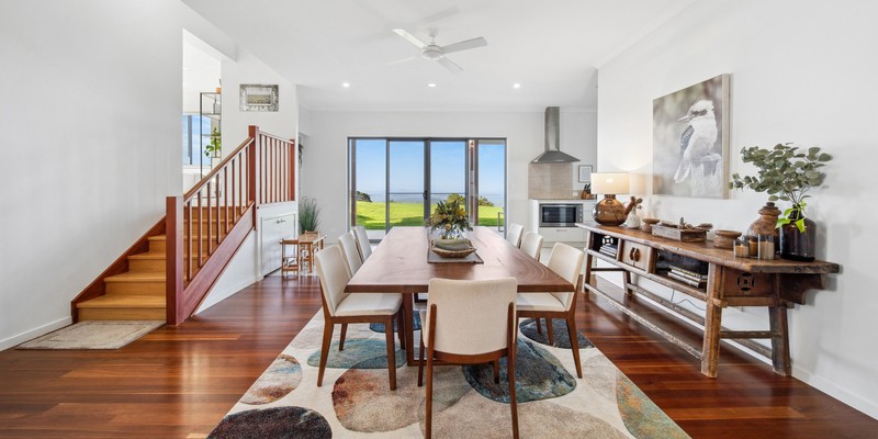 Enjoy the expansive lawn area perfect for lawn games with family and friends, plus the BBQ area provides a laid-back setting for outdoor meals. Inside, the fully equipped kitchen allows for gourmet meal preparation, which can be enjoyed in the elegant dining room or alfresco on the patio, surrounded by stunning views.