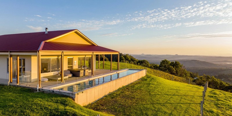 Welcome to Petrichor Estate, a luxurious retreat nestled in the breathtaking Sunshine Coast hinterlands, set on 55 acres of pristine landscape. The estate offers panoramic views of the ocean, lake, Glass House Mountains, and lush rainforest. From the moment you arrive, you'll be captivated by the beauty and tranquillity, with every sunrise and sunset offering a spectacular show of natural beauty.